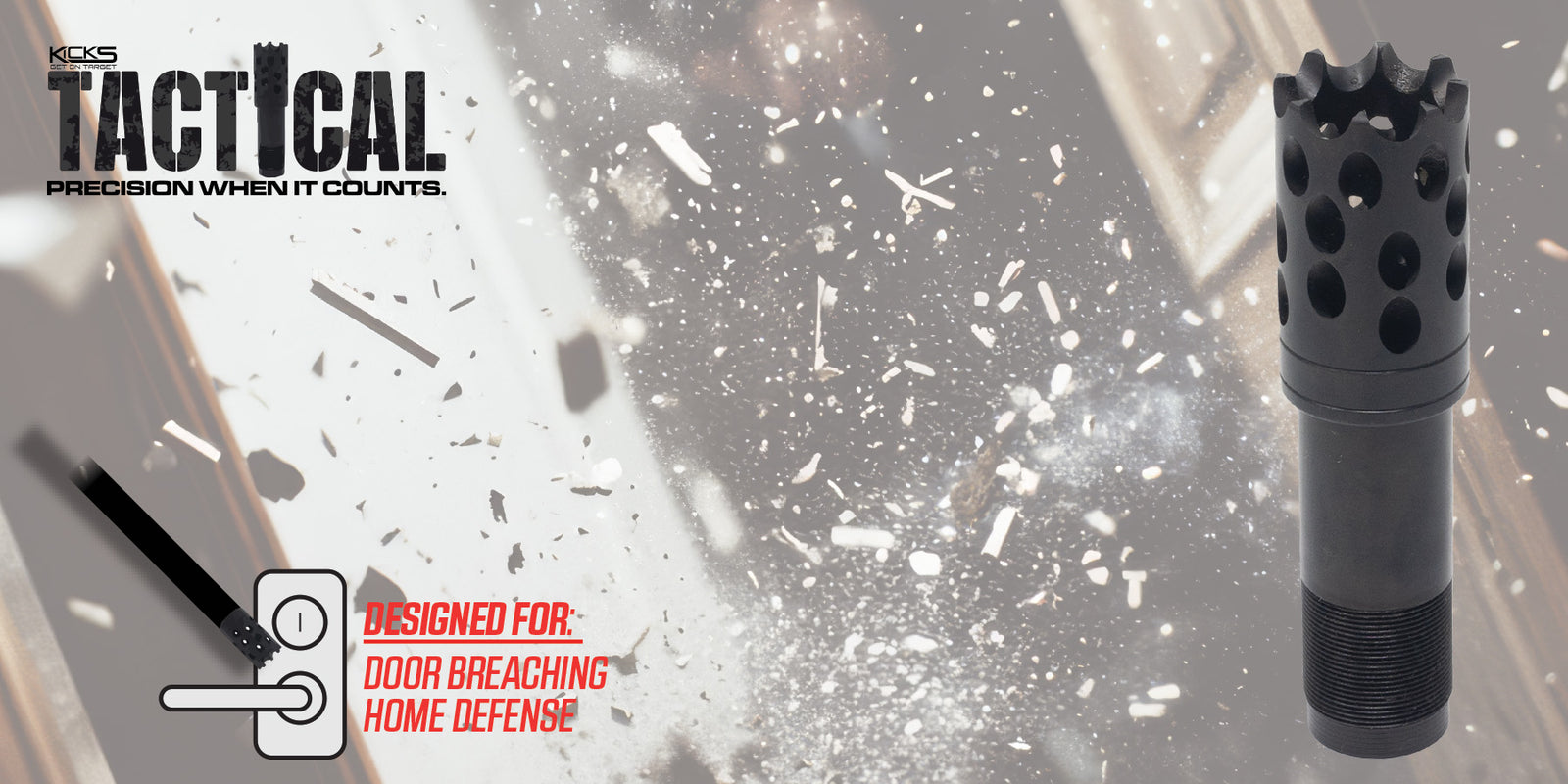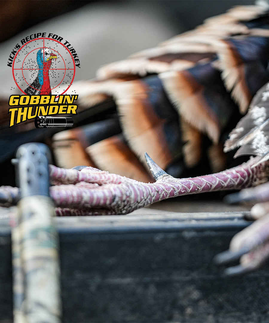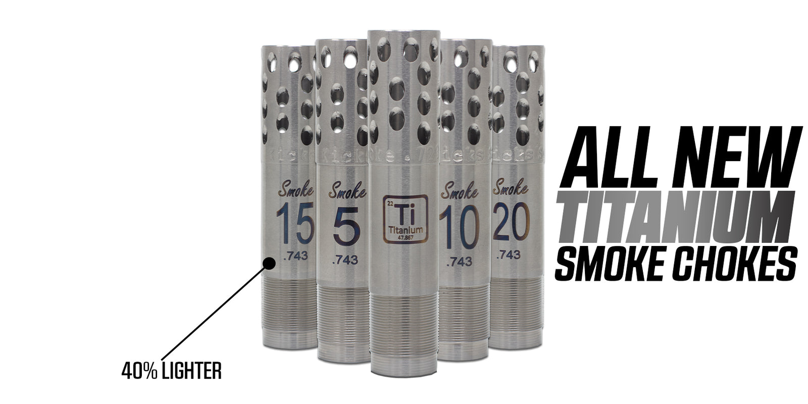KICK’S chokes are diagonally ported at a 135° angle away from the shooter, which reduces the side blast which is common with other types of porting. Because of the sharp angle of the ports, the leading edge acts as a braking system, slowing the wad down in order to provide superior patterning.