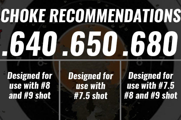 Card shooter chokes are available in .640" & .650" sizes. Consult the recommendation chart to determine which choke constriction will work best for your application.